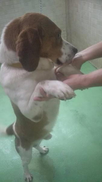 | 特徴(性格など) | 性格や特徴 3歳の人が大大大好き!可愛いやんちゃなビーグル系男の子が寂しく助けを待っています! 飼い主急逝により空き家に繋がれたまま残されていて長崎県動物管理所へ収容されました。 犬はどんな飼い主でも信じています。 可哀想に信じてきた飼い主が突然居なくなり収容された今どんなに寂しい思いでしょうか( ; ; ) この子に幸せを、温かい本当の本物の家族を見つけたいと願っております⭐︎⭐︎ 見た目の推定になりますがやや大きめの中型でどちらかというとがっしりした体つき、現在の体重は大体15キロ位でしょうか。歯は綺麗ですが爪がかなり伸びてしまっています(>_<) 優しい職員さん方が怖くないよ、今度こそは幸せになれます様にと毎日触れ合いながら、一生懸命にお世話してくださっています。 とにかく遊んでほしくて構ってほしくてお腹を見せたり膝に乗ってきて甘えてくる、子犬のまま体だけ大きくなった(^^)といった感じの子で他犬に対してもフレンドリーです。 無駄吠えはありませんが吠えた時の声は大きめです(^^;; お散歩も大好きで喜んで行きます。若くて元気ですし今のところ行きたくて嬉しくて、リードの引きはグイグイと強めです。 急な走り出しなども想定し、どんな子であっても油断は禁物で脱走、逃走には充分に注意が必要ですm(_ _)m お座りやマテなどの躾はこれからになります。 適切に制御し、躾や散歩などの運動の時間をしっかり取ることの出来るご家庭を希望しておりますm(_ _)m ) 無理もありませんがお散歩から戻って保健所の檻の中に入るのを踏ん張って嫌がるそうです( ; ; ) 人間が焦らずにゆっくり長い目で見守りながら、愛情を持って接すればこの子ならきっと、新しい家庭に馴染んでいけるのでは、と思います。 辛い過去がある事も踏まえ、又人を信じてくれる様に、ドンとこい^_^と仰って頂ける方、この先ずっと尻尾フリフリ♪ニコニコの笑顔にしてくださる方、いらっしゃいませんか? どうぞ宜しくお願い申し上げますm(_ _)m ⭐️必ず室内飼育で、譲渡後には速やかな病院受診・健康診断・去勢手術、混合ワクチンをする事が可能な、なるべくお留守番が少ない、沢山優しくスキンシップやコミュニケーションで触れ合っていただけるご家庭。 ⭐️室内でのトイレの躾も1からとなります。 未去勢で片足を上げて排尿します。 当分の間は何かと手がかかり大変だと思いますが(マナーベルトやL字型のトイレ、ペットシートを用意など) 覚悟と根気・理解で受け入れて下さる方。 ⭐️犬の飼育経験があり愛情を持って犬をしっかり躾することが出来る方、お散歩や運動、スキンシップやコミュニケーションに充分時間をあてられる方、場合によりトレーニング教室なども視野に入れて考えてくださる方。 何卒宜しくお願い致します。 ※混合ワクチン、狂犬病予防接種、フィラリア予防実績はありません。フィラリア陽性の可能性も0では無くあり得ることとなります(>_<) 以上の点を踏まえ、この子の置かれている状況、寂しかった、傷付いているであろう心をご理解のうえ、全て受け入れ寄り添っていただけるご家庭で終生可愛がっていただきたいと祈っております。 保健所収容された全ての子達は身勝手な人間による被害者であり、何も悪くありません( ; ; ) 家族の一員として生涯大切にしてくださる優しいご家庭とのご縁が結ばれ、お散歩から帰っても嫌な檻の中では無い、家族の皆さんとずっと一緒に居られるお家が見つかります様に。 https://dog.benesse.ne.jp/lovedog/content/?id=15698 1日も早く温かな愛情を目一杯注がれながら、元気に幸せに生きてほしいです。人間より遙かに短い生涯です。 冷たく硬いコンクリートの上、狭い檻の中で、命の期限が迫る中、ひたすら優しい素敵な里親様を待ち続けています。 悲しい事にこの世の中、人間に飼われないと犬は生きていく事が出来ません。 捨てる飼い主、探さない飼い主、医療にかけない飼い主、虐待する飼い主…飼い主を選ぶ事も出来ません。まだまだこれからのこの子を生涯大切に可愛がって下さる優しい素敵な里親様、どうかお願い致します。きっと、必ず最高の家族になります! もうこれ以上悲しく辛い目に遭わせたくありません。本当の愛情、温もりを知ってほしい、辛かった分、寂しかった分、まだまだこれからの犬生はのびのびと幸せいっぱいに愛し愛されて、生きてほしいと願っております。家族の一員に迎え、愛情溢れるご家庭で一緒に暮らして頂けませんか。 何卒宜しくお願い致します(๑•ᴗ•๑)♡ ◆健康状態 今のところ元気にしていて出されるフードも食べています。 管理所では収容するのみ、になり、健康診断やワクチンなどは一切行っておりません。 ※狂犬病予防接種、フィラリア予防や混合ワクチン実績はありません(>_<) フィラリア陽性の可能性もゼロでは無く、有り得る事となります。 収容動物の健康面の保証、及びトライアル制度は無い為、例えどんな病があろうとも全て