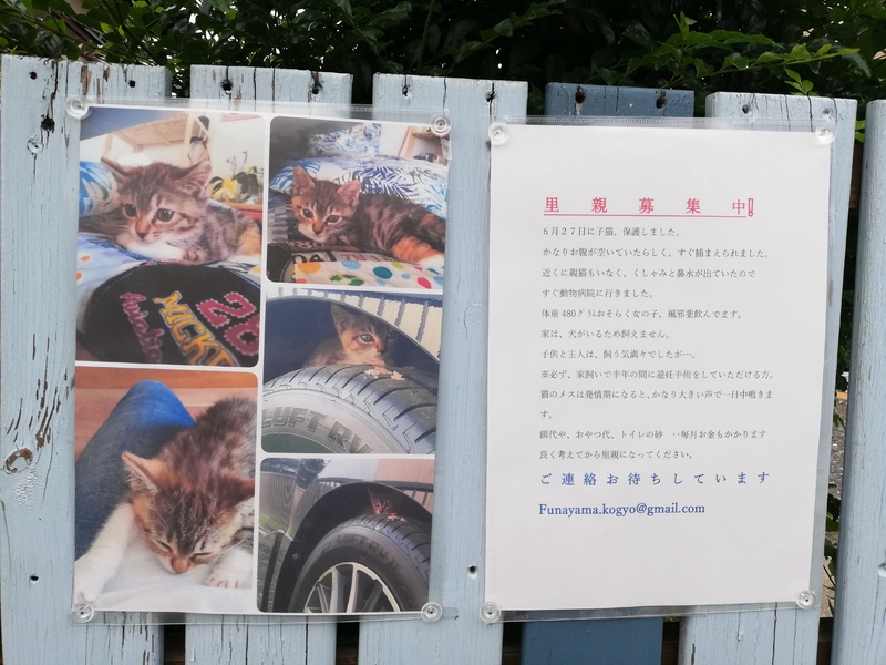| 特徴(性格など) | キジ猫の女の子です。6月27日に駐車場で鳴いてるのを保護しました。鼻水とくしゃみがあったので動物病院で薬をもらい今は落ち着いています。体重480グラム手に乗る位です。 | ||