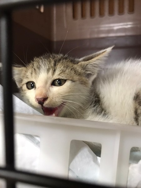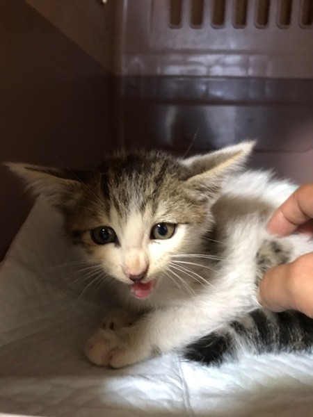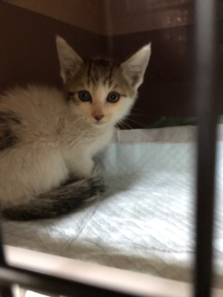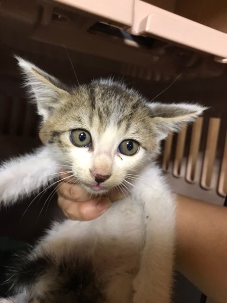 | 特徴(性格など) | 施設に来たばかりでちょっとパニック。まだ怖がっていますが、1日経過した時点撫で撫でに応えて、怖くなってちょっと引き下がって…を繰り返しています。 1週間もすればベタ猫ちゃんになりそうです。 栄養状態・発育は良く、保護時薄汚れてはいましたが至って健康そうです。 |