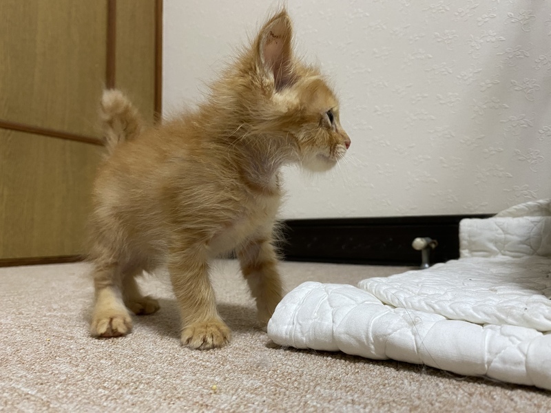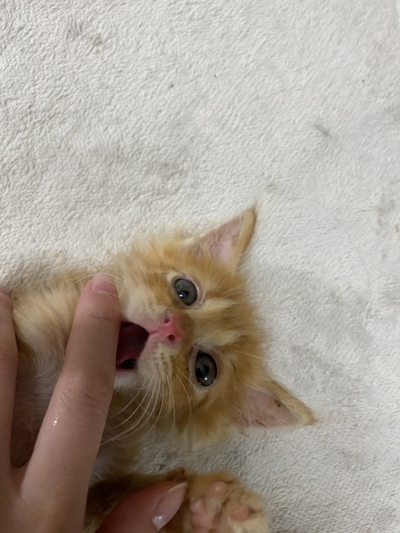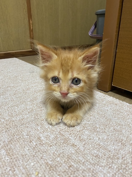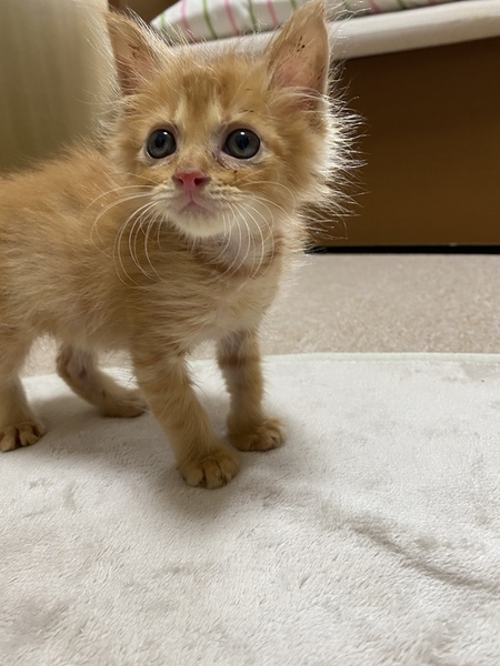 | 特徴(性格など) | 山口県宇部市で6月中旬に保護しました。猫風邪と結膜炎を患っていましたが無事完治し体重も平均値になってきた為里親様を募集致しました。 好奇心旺盛で人見知りをしないかわいい男の子です。 家では「こむぎ」と呼んでいます。 食べ物はカリカリと水を与えています。トイレのしつけはシートでしています。失敗することはほとんどないのですが排泄物を触っちゃう時があります。。 人に対しても物に対しても威嚇したことはありません。 とてもいい子なので素敵な里親様に巡り合ってほしいと思っています。 |