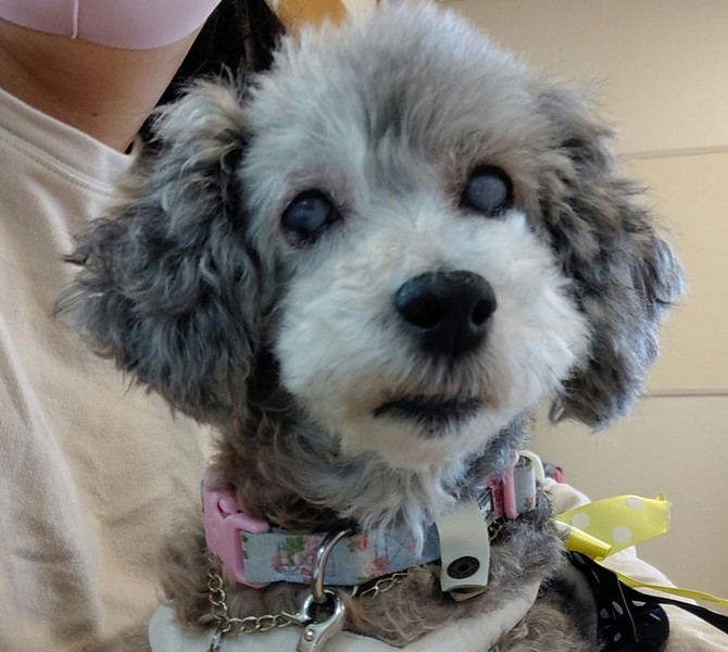 | 特徴(性格など) | ダー子ちゃん(仮名) ・テリア系MIXの女の子 ・体重 5.4キロ ・混合ワクチン接種済 ・血液検査済 ・フィラリア(−) ・不妊手術済 ・マイクロチップ装着済 ・水晶体脱臼(右目) ・角膜白濁(左目) ・抜歯&スケーリング済 ・狂犬病ワクチン接種済 ダー子ちゃんはとっても甘えん坊の女の子です。 右目は水晶体脱臼のため視力はなく、光も感じていません。 後方脱臼のため痛みはなく、目薬等の治療も現在は必要ありません。 左目は角膜白濁(白内障)で視力はなさそうですが、光は感じているようです。 視力はありませんが、何かにぶつかることもほとんどなく生活には全く問題ありません。 体の痒みがあり投薬で随分改善されてきましたが、まだ完治はしていません。 とても甘えん坊で、どこへでも仮母についてきます。 見えない不安からか、仮母がそばにいないと鼻鳴きをしながら探し回ります。 そのため、お留守番は苦手です。 無駄吠えもほとんどなく、シニアならではのゆったりとした雰囲気の子です。 大きな愛で包み込んでくださるご家族様とのご縁をお待ちしております。 ☆預かりブログがありますので、ダー子ちゃんの日常をご覧になってください。 ↓↓ 預かりブログ(うちゃとグリ姫の預かり日記) https://ameblo.jp/kyoko4983/ ※預かりブログ・譲渡条件を必ずお読みの上、下記アンケートフォームよりご応募ください ★《必ずアグリドッグレスキューのアンケートフォームでお願いします》 譲渡条件→ http://aguri.nomaki.jp/z.html 犬の里親募集アンケートフォーム → http://my.formman.com/form/pc/HSiHA19xGo1sxlwu/ 「アグリドッグレスキュー」 https://ameblo.jp/aguriinuneko/ |