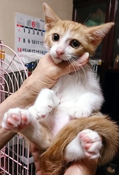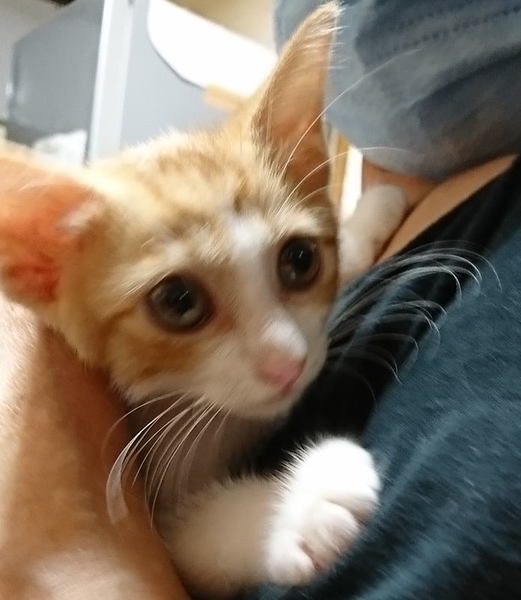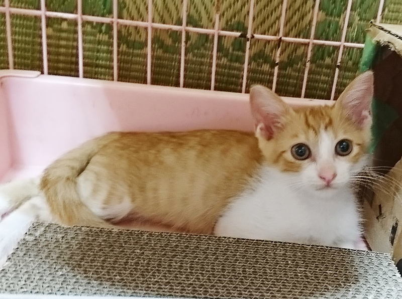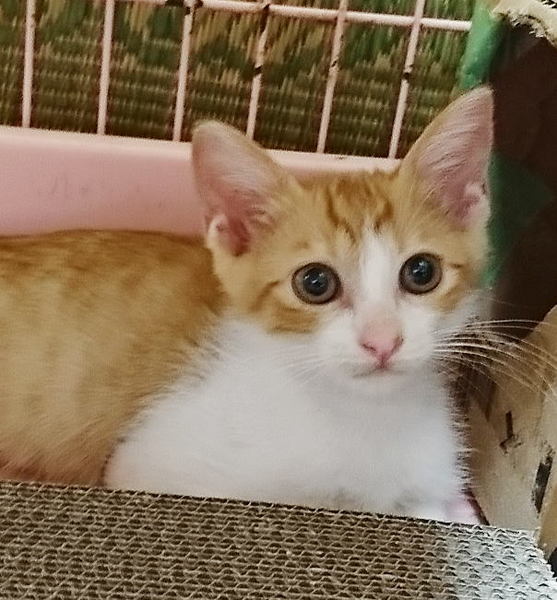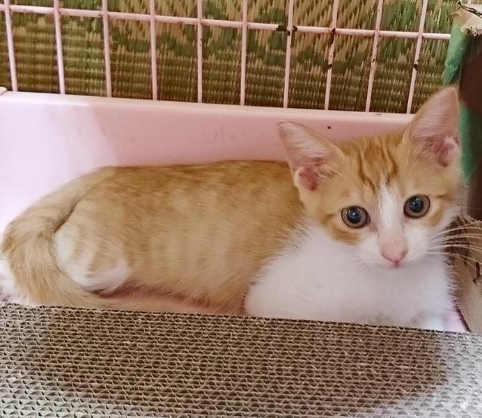 | 特徴(性格など) | 生後約2ヶ月半、茶白の男の子。 よく食べよく寝てよく遊び、元気いっぱいです♪ ★健康状態良好 ★駆虫済み ※まだ小さいため血液検査等はしていないので、先住猫ちゃんのいないお宅を希望します。 |