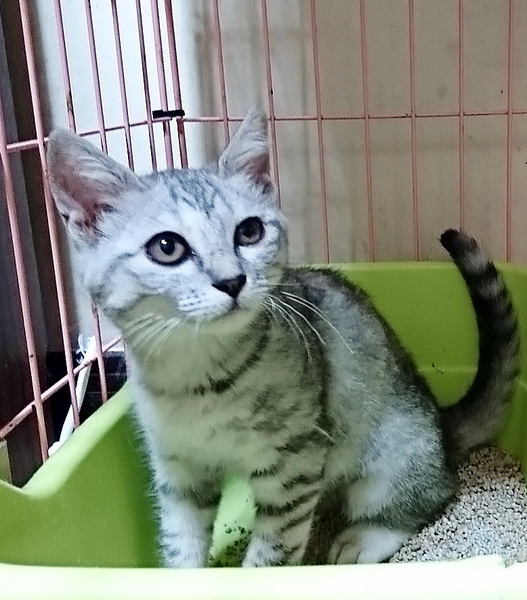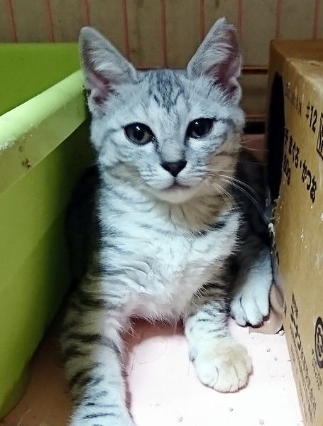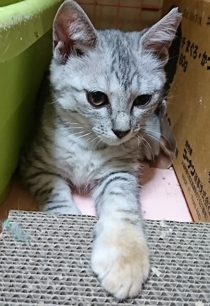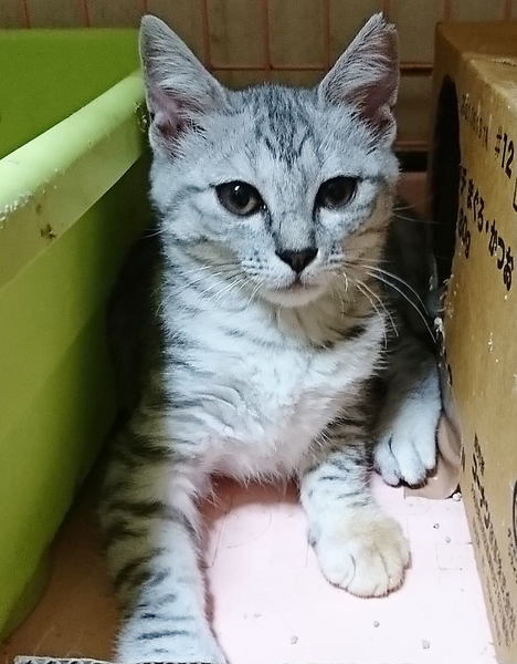 | 特徴(性格など) | 生後約3ヶ月の女の子。 キジ柄ですが、アメショのような(?)とても綺麗な薄グレーの毛色です。 左の前足だけ、先のほうが茶色っぽくなっています。(※汚れではありません^^;) 一応、人慣れはしていますが、やはり環境が変わると慣れるのに少し時間はかかると思います。 長い目で見て接してくださる優しい里親さん探しています。 【健康状態】 健康状態は良好です。 ・ワクチン接種済み ・血液検査済み(エイズ、白血病検査→陰性) ・避妊手術済み ・駆虫、便検査済み |