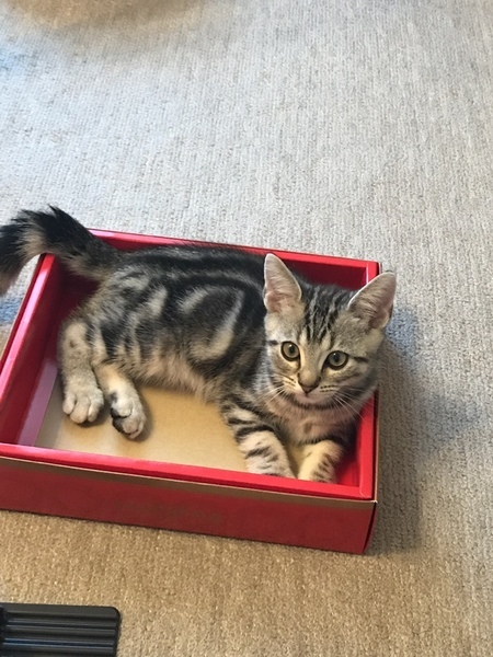 | 特徴(性格など) | シルバータビー色の甘えん坊さんです。 抱っこが好き! 遊んで欲しい! カマッテとすりすりして可愛い子です! |