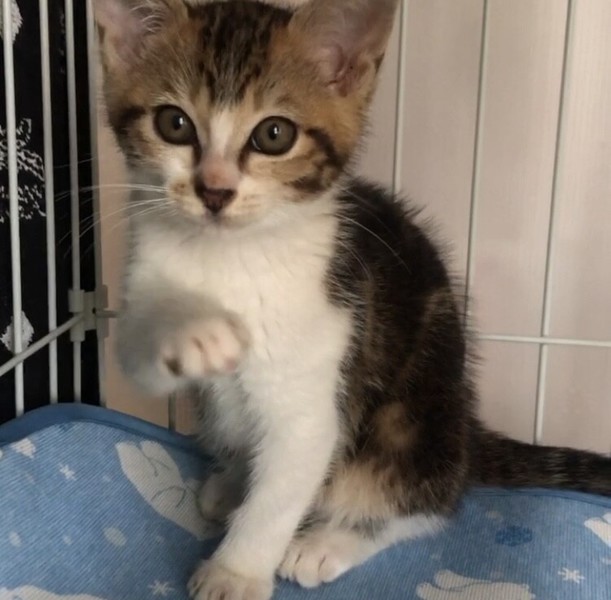 | 特徴(性格など) | 体重保護時810g。現在1キロ。 人見知りもなく大変甘えん坊で元気いっぱいなパステル三毛の女の子です。健康状態も全く問題なくトイレやご飯もしっかり行います。お鼻の模様がハート型です♡まだ母猫に甘えたい年頃だと思うので、撫でると喉を鳴らしてゴロゴロと喜び、抱っこすると甘噛みしてくる仕草をします。甘えん坊で、人慣れトレーニングが不要ななので早めの募集に至りました。 |