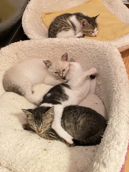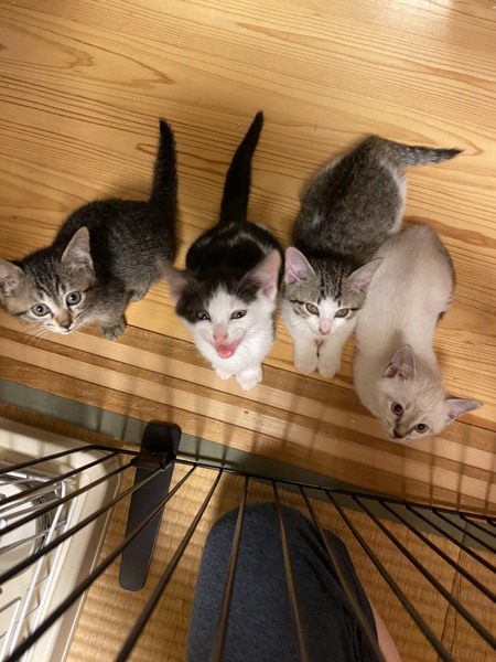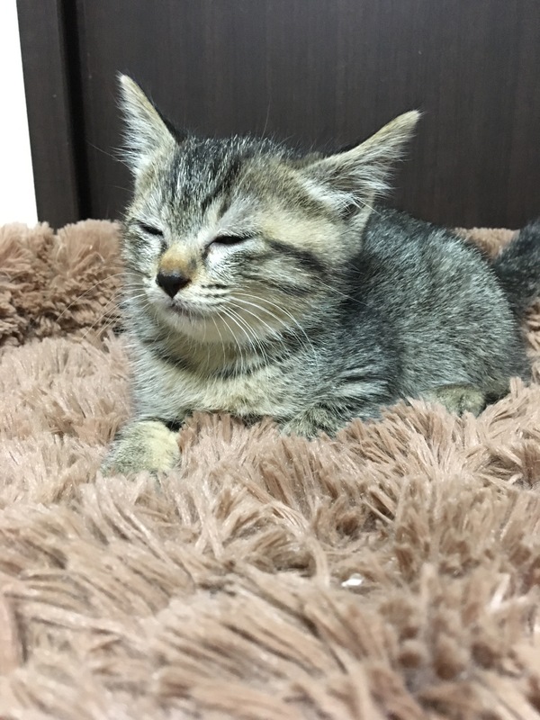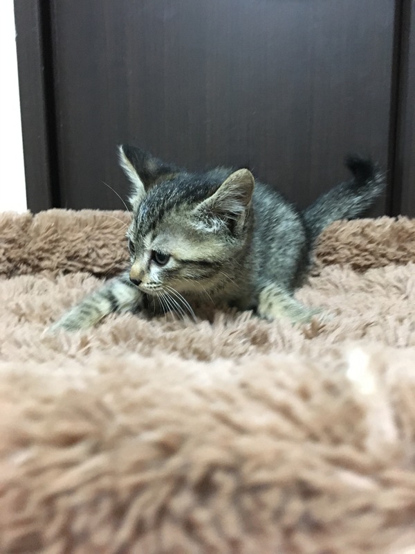 | 特徴(性格など) | キジ柄の女の子です。 おとなしく、周りに合わせて行動する派です。 遊ぶ時は兄弟仲良く遊んでいます。 名前を呼ぶと返事します。 |
