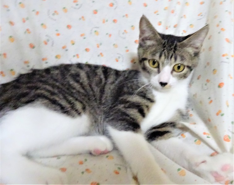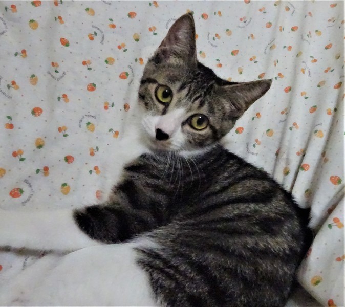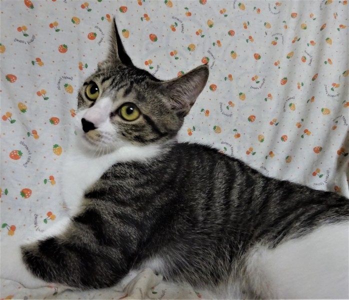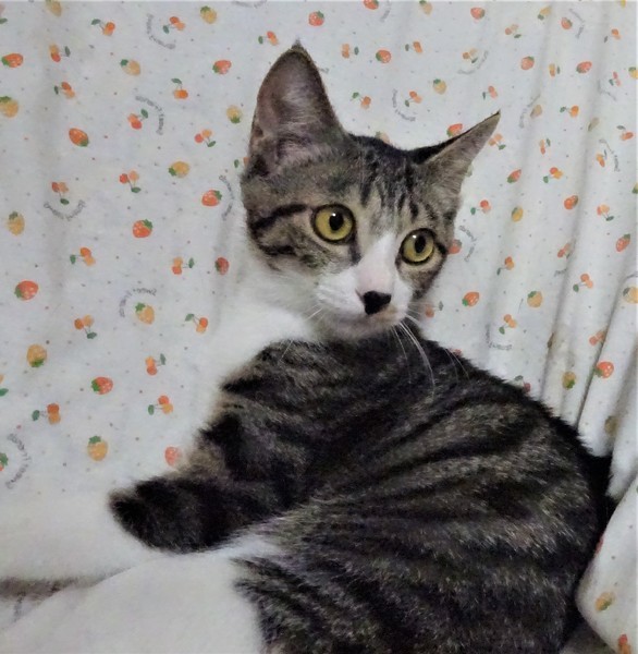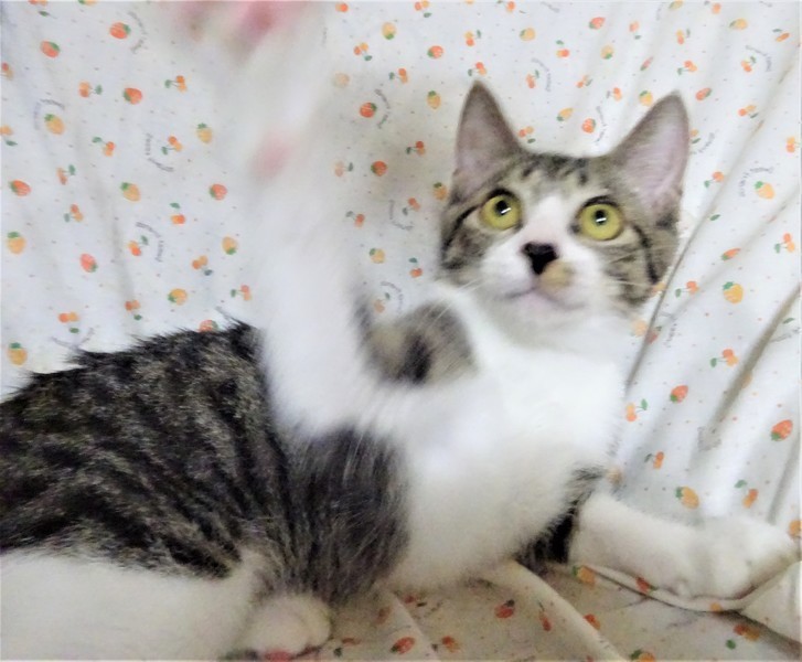 | 特徴(性格など) | 仮名: イチロー(オス) 毛色: キジ白、鼻黒、尻尾長い 性格: ビビリなので、最初はフ~と言ってしまうこともありますが、攻撃性はないので、触ったり抱っこしたり出来ます。一緒に遊んだりする時間があれば馴れてくれると思います。兄弟と一緒にいますので、他猫ともうまく付き合えると思います。 猫初心者の方には扱いにくいと思われると思いますので、猫飼い経験者で、ゆっくり様子を見ながら馴らしてくださる方が良いかと思います。馴らすためにも、ケージを使って頂きたいと思います。 |