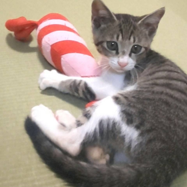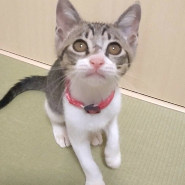 | 特徴(性格など) | 仮名をたらちゃんといいます。 少し慎重なところがありますが、保護2日ほどでゴロゴロ言ってくれるようになりました。 慣れた人には膝に乗って来たり、ニャーニャー甘えてくれます。 おしゃべりさんです。 目がぱっちりして可愛い女の子です。 同居中の桜夜君が猫界のルールを教えてくれていて、甘噛みが出来るようになりました。 一緒におもちゃで遊んでいます。 |