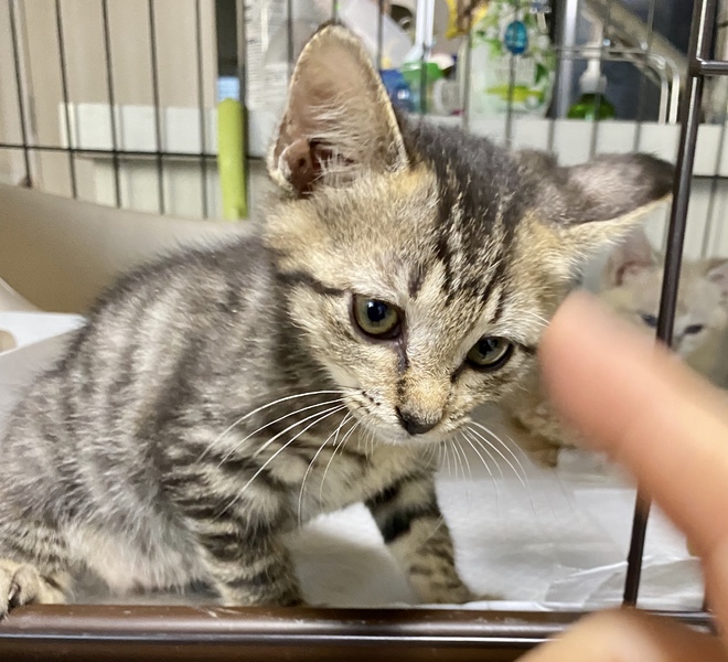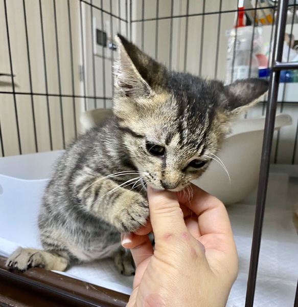 | 里親募集する理由 | 知人の高齢の方が、ご自宅の近くの公共施設に行かれた際、4匹兄弟で心細そうに鳴いていたので、見捨てられず保護されました。 ご自宅でお世話をされていたのですが、その方のお宅も猫が数匹と犬が1頭いて、これ以上飼育が出来ないこと、体調を崩されて子猫のお世話が難しくなったこと等で、我が家で「新しいおウチ探し」を引き継ぐことになりました。 |