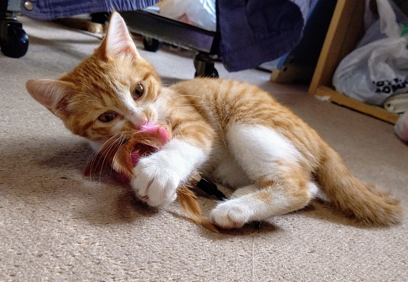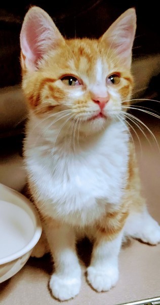 | 特徴(性格など) | ●仔猫:推定3ヶ月 茶トラ、茶シロの元気な兄妹です。 ・ワクチン済(二回) ・ノミダニ回虫駆除済 ・猫エイズ及び白血病 陰性 尻尾はまっすぐ、ピンクの鼻と肉球。 二匹とも美人さんです。 まだ少し警戒心はありますが、おっかなびっくりに抱っこさせてくれるようになりました。 食欲旺盛、おもちゃでもよく遊び元気いっぱいです! 特にケージ越しだと強気でアグレッシブ。内弁慶です。 |