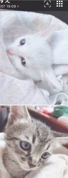 | 特徴(性格など) | まっしろの子猫で目はブルーです。 茶キジもいます。 よく懐いています。 トイレもきちんとできます。 ノミダニスポット済みです。 |