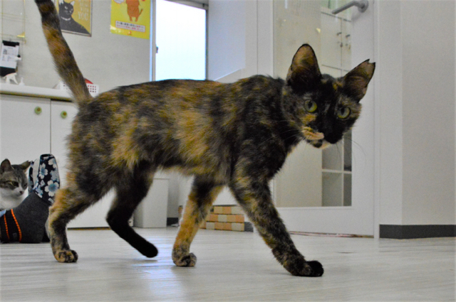 | 特徴(性格など) | ☆☆☆ご希望の方は、以下のアンケートフォームにご記入の上、送信してください☆☆☆ ねこ親希望アンケート→ http://chibawan.net/contactform_cat 【猫No】3086 【愛称】モネ 【性別】メス 【年齢】推定2才 【毛色】サビ 【体重】3.3kg 【状態】不妊手術済、ワクチン接種済(20/06/01)、血液検査済(エイズ−・白血病−)、ノミダニ駆虫済、トイレトレーニング済 【保護場所】神奈川県横浜市 【日記】 http://dogden.blog28.fc2.com/ from Dog Den. 【経緯】飼育放棄現場より引取り 【性格】 手足や尾が長く、頭が小さいモデル体型。 飼育放棄され、風呂場に監禁されて居た為、栄養状態が悪くまだ痩せていますが、これからとてもゴージャスなサビ猫になると思います。 人懐っこい甘えん坊で、初めて会った時から手を出すと寄ってきてスリスリしてきます。 抱っこは苦手なようですが、お腹を出して甘えたり、撫でられるのが大好き。 オモチャでもよく遊びます。 当初は食が細くなかなか食べてくれませんでしたが、今は多頭の中で 他の猫に負けない位、フードやオヤツを食べるようになりました。 他の猫との付き合いは苦手なようなので、1頭飼い希望。 猫を飼うのが初めての方でも飼いやすい猫だと思います。 【補足事項】ノミや栄養不良により毛が薄い部分がありますが、今後改善されてくると思います。(ノミダニ駆虫済み) 【その他】完全室内飼育、しっかりとした健康管理、逸走防止を心がけ、最後の時まで愛情いっぱいに生活していただけるご家族を探しています。(単身者からの応募も可ですが、20代の独り暮らしは男女ともにお断りします。) 多くの猫が「猫カフェブラン」で本当の家族との出会いを待っています。 ホームページで営業日等をご覧の上、猫達に会いに来てください。(カフェブラン http://www.neko-cafe.info/ ) ※猫部屋への入場は、時間に応じて料金が発生します。 ※猫カフェブランの猫部屋は、15歳未満の方は入室できません。 (お子様と一緒にお見合いを希望する場合は、ネット上よりアンケートをお送り頂いた後、お見合い日時を設定させていただきます。) |