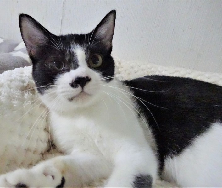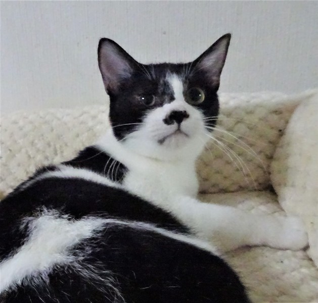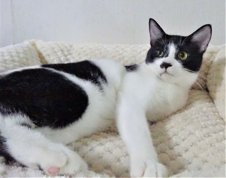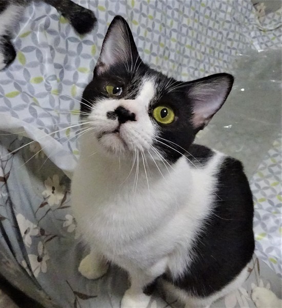 | 特徴(性格など) | 仮名: 夢香ちゃん(メス) 毛色: 白黒、尻尾短め 性格: 威嚇なく、触ったり抱っこしたり出来ます。人馴れしています。 小さめの子ですが、良く走ります。兄弟や同月齢の子達と一緒にいるので、猫同士の事は学習出来ていると思います。右目瞼に少し形成不全が見られますが、目には異常がありません。 抱っこよりも遊ぼうよという感じです。 ご飯が来ると自分からケージに入って待っています。 飼い主さんの安心の為、ケージを使用する事をお勧めしています。 ノミ取り済 検便済 駆虫済 3種混合ワクチン済 猫エイズ・白血病ウィルス検査はともに陰性 |