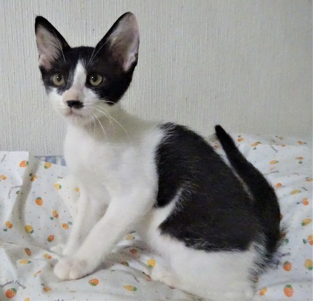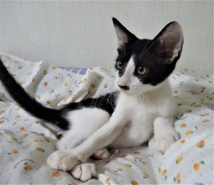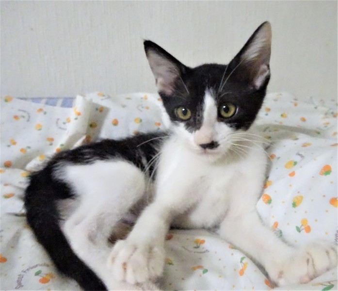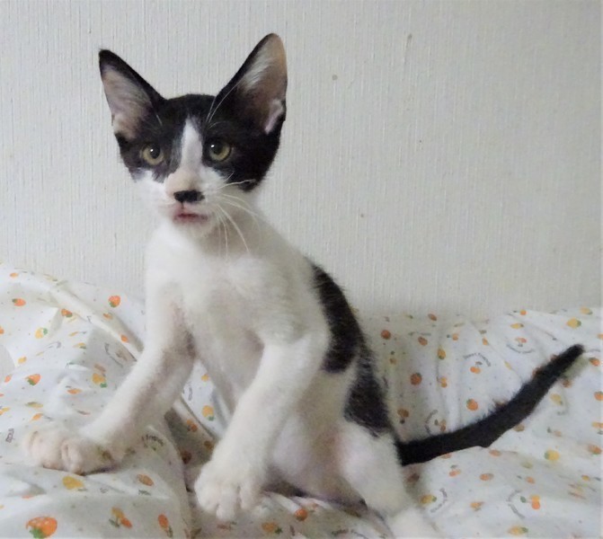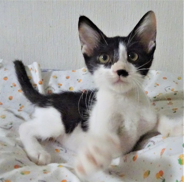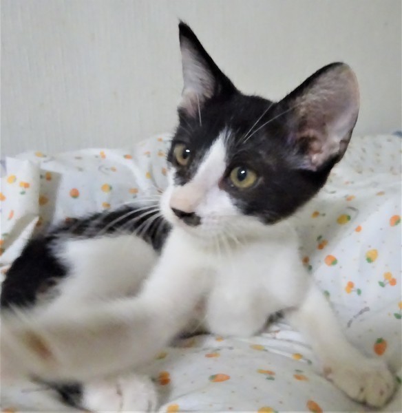 | 特徴(性格など) | 仮名: 政宗くん(オス) 毛色: 白黒、尻尾長い 性格: 威嚇なく抱っこ出来、猫飼い初心者の方でも大丈夫と思います。 人見知りはないと思います。抱っこすると甘え、いつも機嫌よく遊んでいます。 他の猫ともうまく付き合えますが、兄弟の夢香ちゃんとは仲良しでよくプロレスをしていますので、一緒のご縁があると嬉しいです。 まだ小さいので、安心のためにケージ飼いをお勧めします。 |