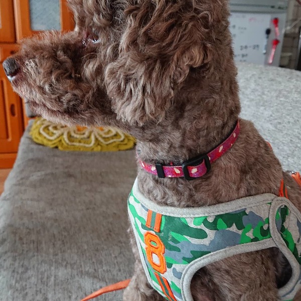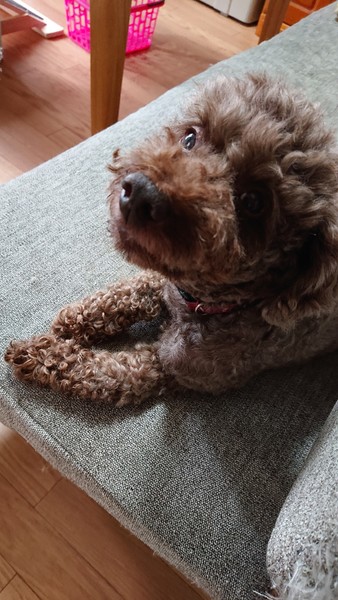 | 特徴(性格など) | トイプードル ブラウン 少し大きめ?6キロ位 大人しめでお座り、お手、おかわり出来ます。トイレは時々失敗あり。人、犬、猫大丈夫。フレンドリー過ぎかな?相手が威嚇しても行こうとします。今、体は丸刈りにしています。 |