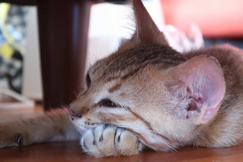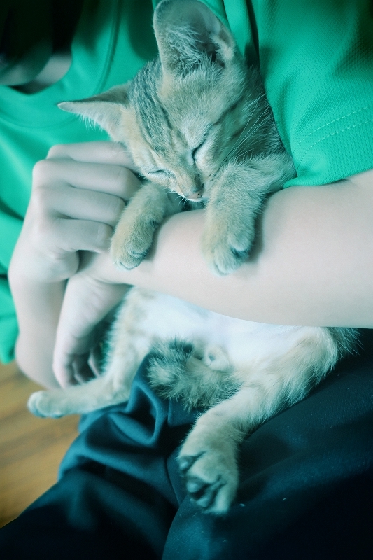 | 特徴(性格など) | 細かいことにはこだわらない、おっとりしておおらかなタイプ。 スリスリ甘えたさんで、人間の手のひらに顔を埋めて、眠るのが好きです。 ちゅっちゅしていたので、ミルクを飲んでいた頃を思い出しているのかも(ΦωΦ) 同時に募集している「しずく」の弟分にあたります。 「しずく」にも対面初日から甘えていました。 どんな猫とも仲良くなれる人懐っこい性格のようです。 |