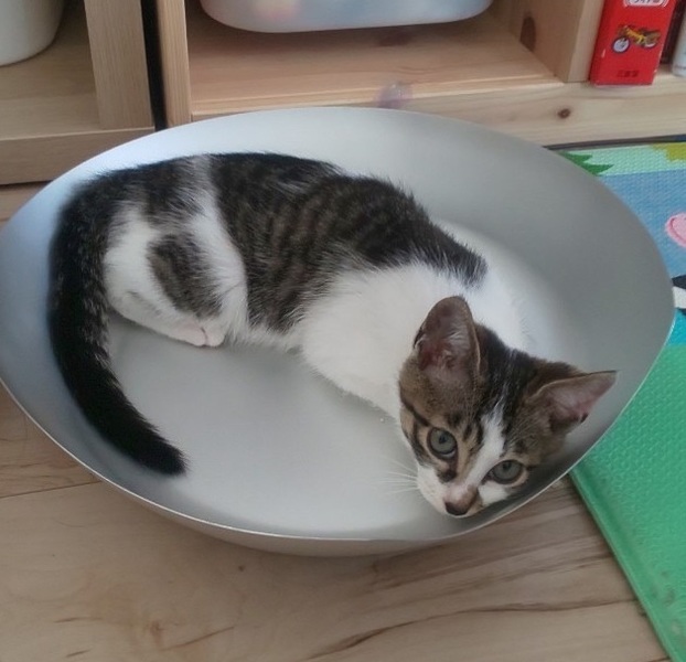 | 特徴(性格など) | 【仮名】モグくん 【性格】ちょっとパヤッとした毛並みが カワイイ系イケメンのモグくん♪ まだ人馴れ修行中ですが前回の譲渡会参加の経験で 自身が成すべきことを理解したようです(笑) おもちゃ遊びは大好きで このあたりはまだまだ仔猫ですね♪ お留守番時間がないor短い里親様を希望します。 同世代とのペアでのお迎えを希望します♪ ※1ピキ譲渡不可 シュシュちゃんと兄妹です♪ |