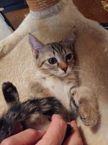 | 特徴(性格など) | キジ 抱っこできます。元気に兄妹で走り回ってます。カリカリ食べてます。 |