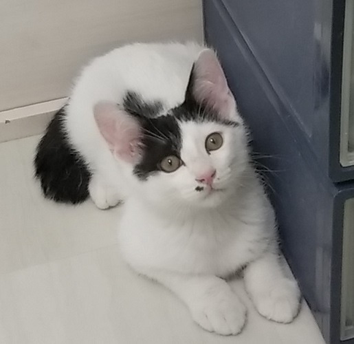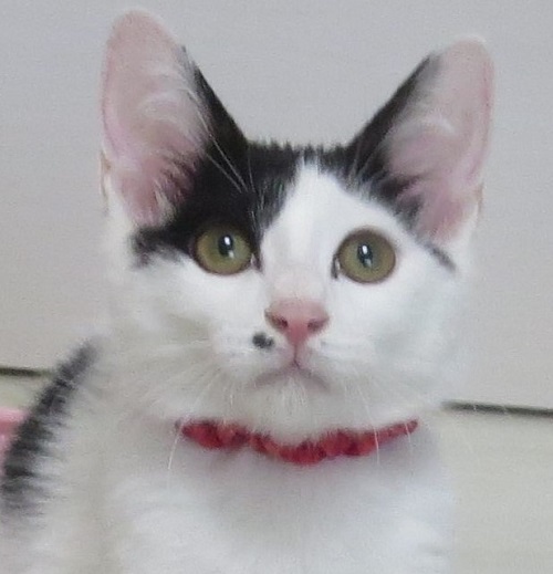 | 特徴(性格など) | 保護して1ヶ月になりました。 怖がりさんだったのですが、頑張って修業して、遊びが大好きなネコになりました。 そして口元の黒いほくろが特徴の、なかなかのハンサムくんに成長しました。でも元々の性格は小心者、ちょっとしたカメラの音にもビクついてしまう、情けない奴です! 夢中で遊んでいるのに、ビクつく癖がなかなか抜けません。堂々としたネコになれるよう、後一歩、頑張ります~! |