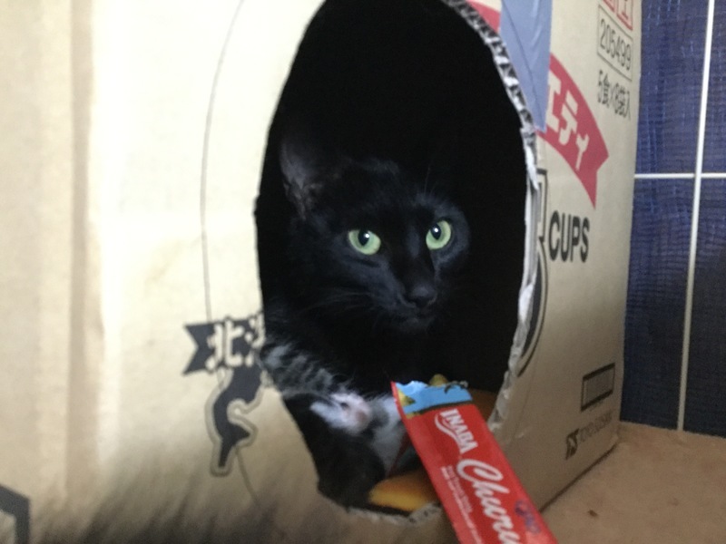 | 特徴(性格など) | 去年ノラちゃんから生まれたおっとりとした性格の黒ちゃんが5匹のお母さんになりました。 お母さん黒猫は保護団体様の助成を受けて避妊手術をしたので、飼い主様の負担はありません。 子供たちも日に20グラム近く増えているときもあり、健康そうです。 保護したときから目やに、鼻水など一切なくきれいな子たちです。出入り口がなかったので、一切外に出ていません。 トイレ覚えました。お母さんの分も横取りするほど食欲旺盛です。保護した日までおっぱいだけだったなんて信じられないくらいです |