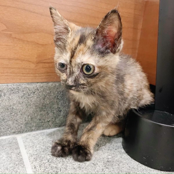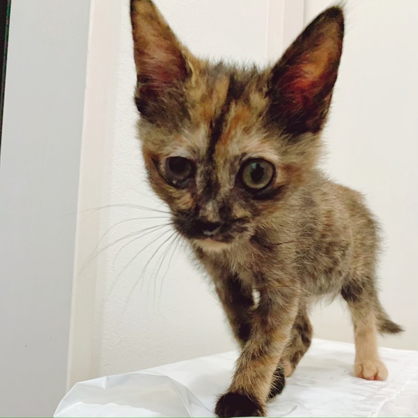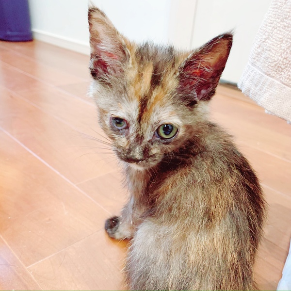 | 特徴(性格など) | 将来の模様が楽しみなキレイなサビ柄の女の子です。しっぽはカギしっぽです。 3兄妹の中で 1番 運動神経の良い、積極的な性格のニャンコです♪ 猫風邪の後遺症で右目の開きが弱く、見た目に左右差がありますが、生活には支障ありません。 毎日 兄妹と一緒におもちゃを追いかけて走り回っています♪ 将来的にもう少し状態が良くなる可能性があると獣医さんから聞いています。 見た目よりも元気でいてくれることを重視してくださる優しい里親さまに見つけていただけると嬉しいです。 |