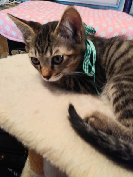 | 特徴(性格など) | キジ 抱っこできます。元気に兄妹で走り回ってます。カリカリ食べてます。 |