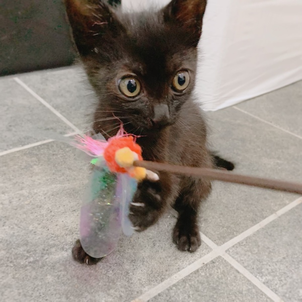 | 特徴(性格など) | ちょっとのんびりでマイペースな性格の黒猫ちゃんです。しっぽがジグザグになっていてとっても個性的です♪ 3兄妹の中で おっとりしていて、物分かりこよい賢い子です♪ 猫風邪の後遺症で、お鼻が詰まりやすかったり涙目になりやすいですが、生活には支障ありません。 毎日 兄妹と一緒におもちゃを追いかけて走り回っています♪ 将来的に体力がつけば、もう少し状態が良くなるかもしれないと獣医さんから聞いています。 見た目よりも元気でいてくれることを重視してくださる優しい里親さまに見つけていただけると嬉しいです。 |