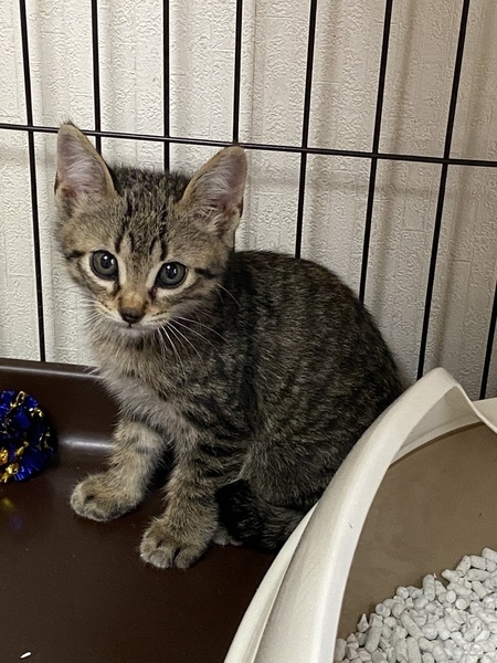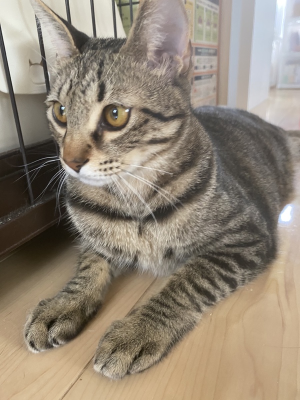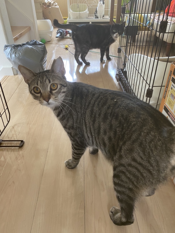 | 特徴(性格など) | 食欲もあり体格も良く順調に成長しています。優しい子で痛いじゃれかたしません。 エイズ白血病陰性。 |