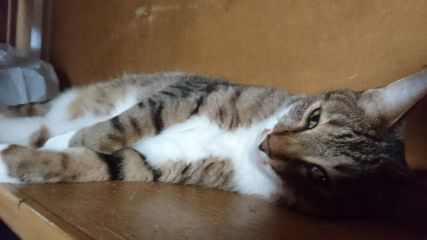 | 里親募集する理由 | 2011年に、当時東京にあった自宅に現れた、目が明いて歩けるようになった子猫 トラと名付けましたが、我が家に住み着き大きくなりました。その後、すぐに避妊しないで生活しおり、数回の出産を経験していますが、トラの2013年の出産で生まれた♂猫です。 わたくし、飼い主が、長野県への移住及び、さらに長野を離れざるを得なくなり、現在長野県木曽郡にて、知人のお世話になっている猫を可愛がっていただける方を探すことになりました。 よろしくお願いいたします。 |