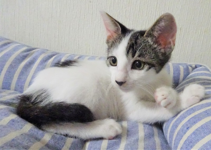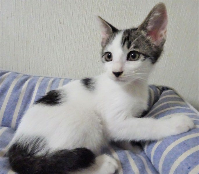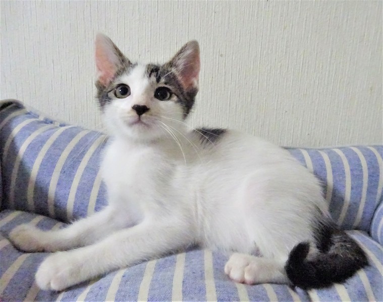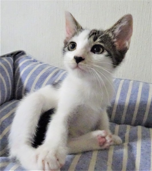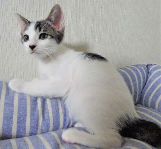 | 特徴(性格など) | 仮名: 桃香ちゃん(メス) 毛色: 白キジ 性格: 威嚇なく、攻撃性もなく、人馴れしていますが、猫とはちょっと時間がかかります。大人しそうに見えるけど、嫌な事は嫌というタイプ。 爪切りなどは嫌いです。抱っこも好きですが、今は、遊びの方が大事なのでじっとしていません。仲良しの姉妹がいますが、片目が悪く、大きくなってからの手術が必要なので、一緒にしてやれそうにありませんが、その分甘えさせてくださる方を希望致します。 安心のためにケージをお使いになると良いと思います。 |