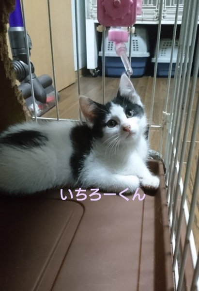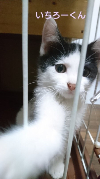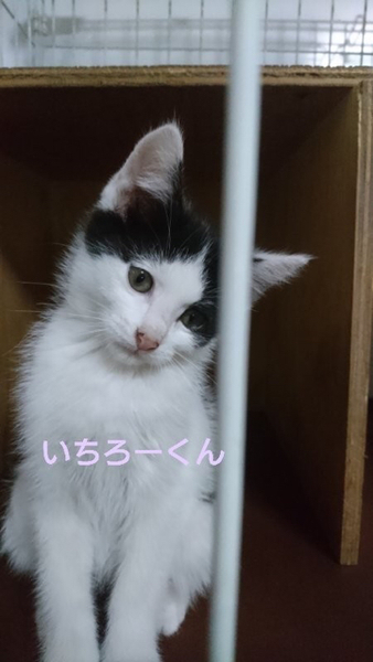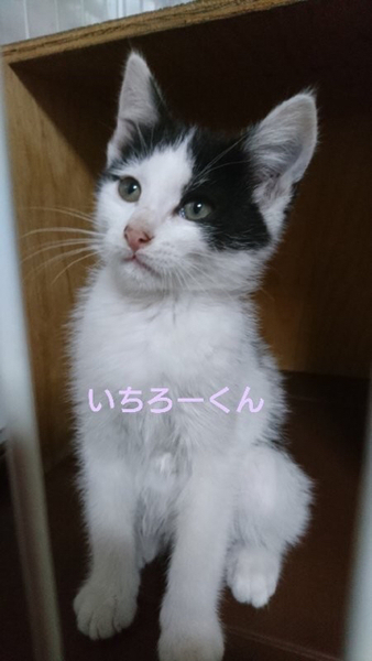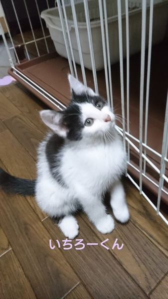 | 特徴(性格など) | 仮名「いちろーくん」 ワクチン済み、駆虫済み、ウイルス検査白血病、エイズ共に陰性 白黒の男の子。始め会う人にはちょっとビックリして様子を伺いますが、すぐに仲良くなれる子です。 甘ったれで元気ないちろーくんですが、なんだかちょっとドジっ子なところがなんとも可愛いです。 ひとりぼっちでいるところを保護されましたが、月齢的には他の猫と遊ぶ事も大好きで、そうする事で学んでいく事も多い時期です。 1匹での譲渡も可能ですが2匹での受け入れをしてもらえたら、いちろーくんにもいいのではと思っています。 小学生以上でしたらお子さんのいるご家庭でも大丈夫です。 性格にキツイところは無い子なので、初めて猫を飼う方でも大丈夫だと思います。 C308862のななおくんと仲良しです。 ななおくんの方が月齢は少し大きいですが、一緒に迎えてもらえたらお世話も楽だと思います。 |