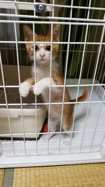 | 里親募集する理由 | 先月末に保護しましたが、家では飼えずに里親さんを募集することなりました。保護した時は風邪を引いていましたが、薬をのみ今はとっても元気になっています。 | ||