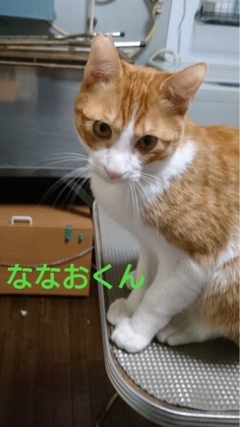 | 特徴(性格など) | 仮名「ななおくん」 ワクチン済み、駆虫済み、ウイルス検査白血病、エイズ共に陰性 茶白の男の子 スリスリゴロゴロの甘ったれのかまってちゃんです。 誰が来てもスリスリゴロゴロで「撫でて」とアピールしてきます。 オモチャで遊ぶのが大好きで、猫じゃらしなど持ったとたんに飛んで来ます。 人馴れも問題なく遊ぶのも大好きなのでお子さんのいるご家庭や初めて猫を飼う方でも大丈夫です。 |