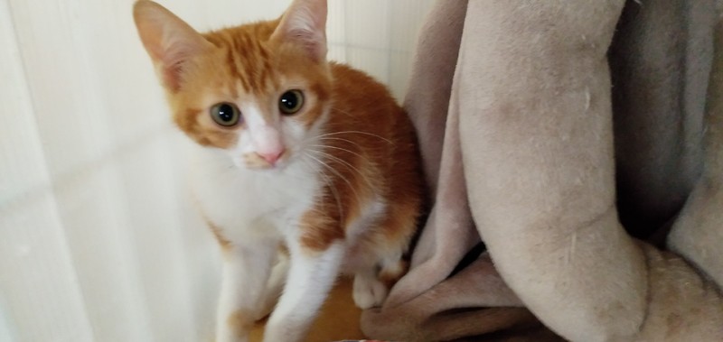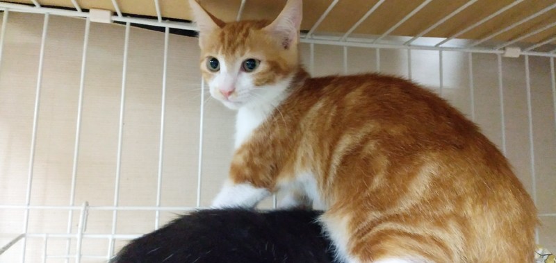 | 特徴(性格など) | 4匹兄妹の唯一のオス。 保護時より元気いっぱいの食いしん坊。妹たちをしっかり守るお兄ちゃん。 まだ警戒心もありますが、撫でられると気持ちよさそうにしてます。 健康状態良好 ノミダニ駆除、駆虫済 ワクチン1回目接種済 |