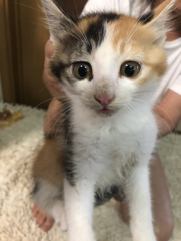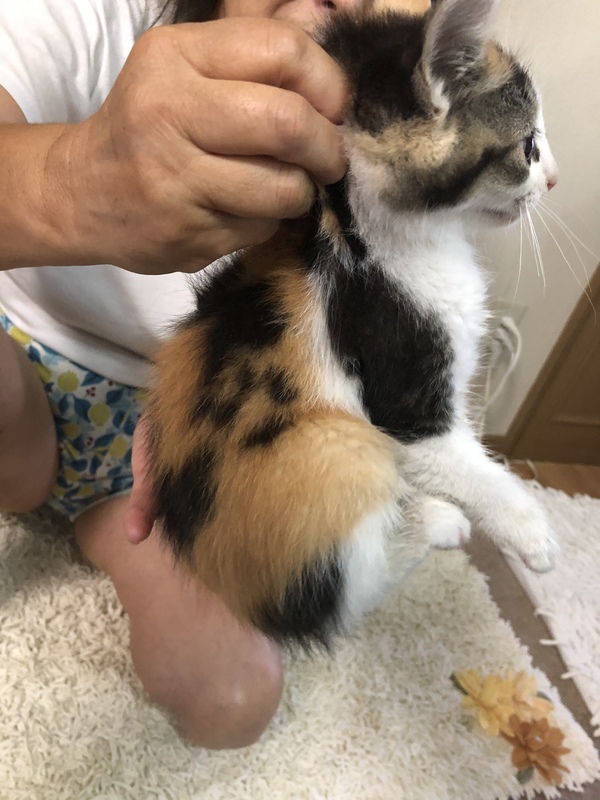 | 特徴(性格など) | 可愛いアーモンドアイの三毛猫ちゃんです。 尻尾はまっすぐで長めです。 まだ保護したばかりなので人馴れしてません。 これから人馴れするようにしていきます。 |