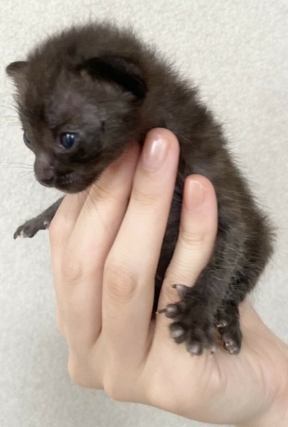 | 特徴(性格など) | 【代理投稿です】 ミルクやりさん宅に居る為 簡単で申し訳ありません。 全体的に黒で濃い黒の虎柄 まだミルクちゃんですので 良く飲み、ちょっと遊んでは寝て また飲んで…お腹プックリ 赤ちゃん猫の可愛らしさいっぱいです |