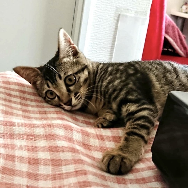 | 特徴(性格など) | キジトラの女の子仮名はさくらです。 かなりおてんばで、室内を走り回り壁を登ろうとするリスのような子。人見知りしますが基本的にはとても甘えん坊で、人の側にいたがります。撫でるとゴロゴロ喉を鳴らしてくれ、お膝に乗るとフミフミしながら服をちゅーちゅー吸うのがとっても可愛らしいです。 保護主の顔をじ〜っと見る子です。 賢く、小さい隙間からするりと抜け出てしまう器用さもあります。 ひとりっ子なので他の猫との相性は分かりませんが、外猫の声がしても落ち着いています。 おうちの中を走り回っても暖かく見守ってくださり、一緒に楽しく遊べるご家族のもとに迎えていただけたら幸いです。 健康状態は良好。 体重2.18kg (7/19) 駆虫2回済。白血病・エイズ検査は陰性。 3種混合ワクチン2回接種済 |