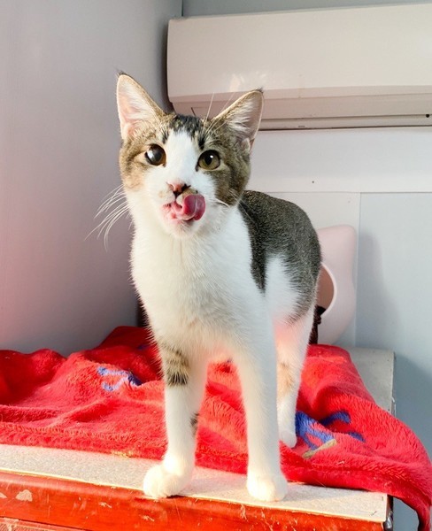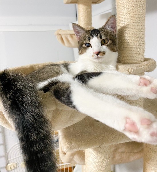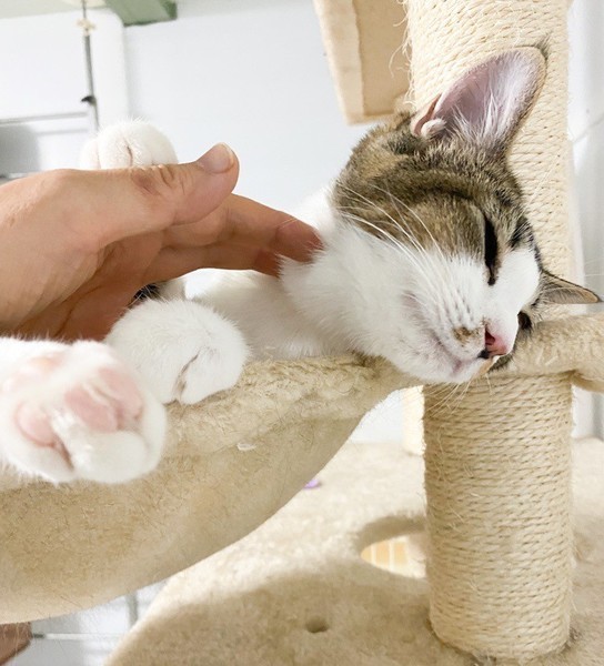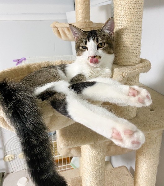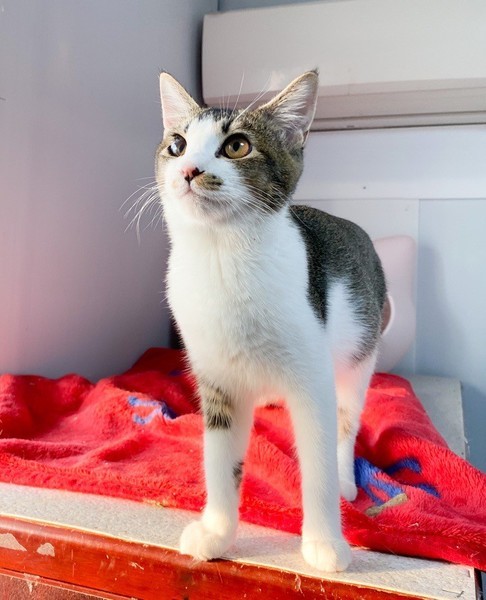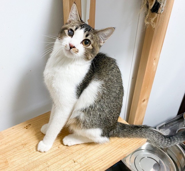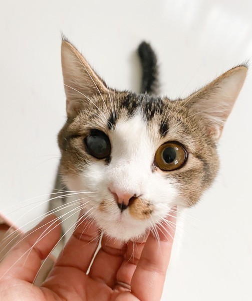 | 特徴(性格など) | 人が大好き❤お茶目な「いちょう」ちゃん❤ 小さな時から人の手で育てられたので、天真爛漫、素直な女のコ♪ 片目、自身で傷つけたようで、白濁、眼球委縮がありますが、日常生活には問題なし、の元気いっぱいです♪ 現在、ドライフードを置き餌として、パウチを一日2回与えています。 <推定誕生日:5月始め> |