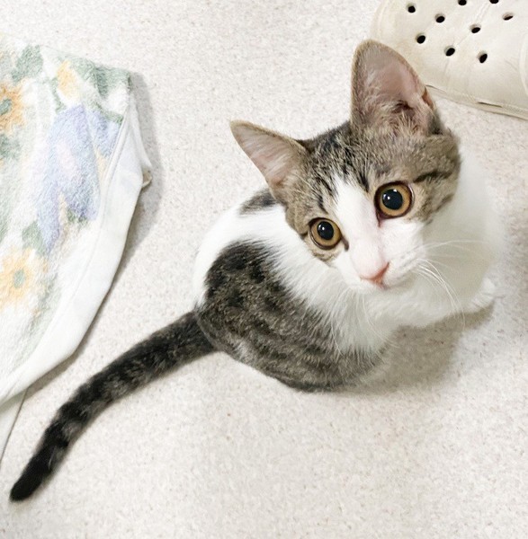 | 特徴(性格など) | まったり「もみじ」ちゃん❤ 小さな時から人の手で育てられたので、遊んで貰うの大好き♪ いつも人の傍にいて、お手伝い?!な好奇心旺盛なストーカーです。 現在、ドライフードを置き餌として、パウチを一日2回与えています。 <推定誕生日:5月始め> |
