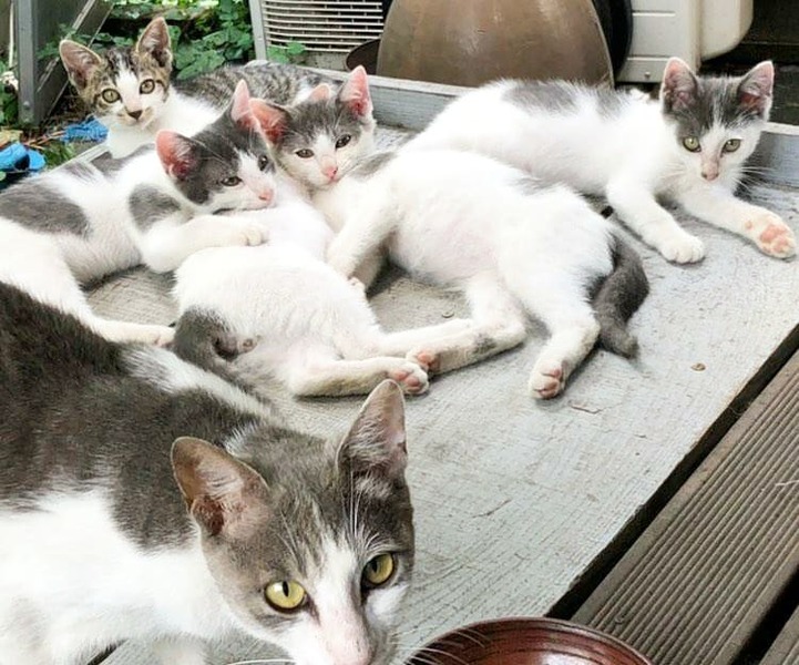 | 里親募集する理由 | 野良猫ちゃんが近所で産んだようです。 移動できるくらい育った頃に、今回の保護主様の家の庭に子猫をひきつれて引っ越してきたようです。 今現在も、保護主様の自宅の外で生活しています。保護主様の家の中には2匹の猫ちゃんがおり、この子達を保護するスペースがないため、やむなく現在も外での保護となります。大分県です。 母猫ちゃんは、時期が来たら避妊手術をする予定です。 子猫達は、やはり外で生きていくのは大変なため、できることなら、里親様をみつけてあげたく募集いたしました。 気になる子いましたら、ぜひお問い合わせをおまちしています。 また、現在、必要な検査、ワクチン等できていません。お渡しする前に全て行ってお渡しいたします。 |