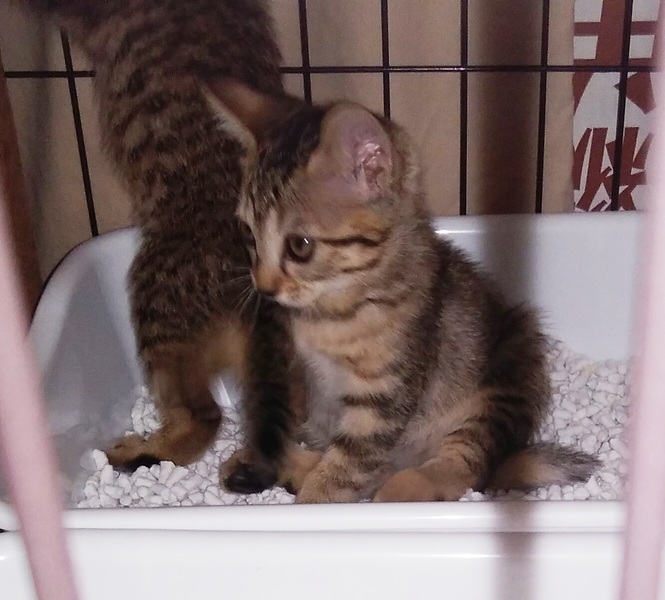 | 特徴(性格など) | キジが3匹、キジ白が1匹です。 キジ白ちゃんは耳が白いです(^-^) できれば姉妹で育てていただける方、希望です。 ウイルス検査、4匹ともエイズ・白血病マイナスです。 |