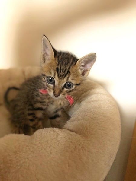 | 特徴(性格など) | 8/4現在体重は620gです。 パンくん、テイルくんとは兄弟です 兄弟の中では控えめな性格をしています。 3兄弟いつも一緒に遊んでいます。 カリカリフードを食べています。 元気に過ごしています。 |