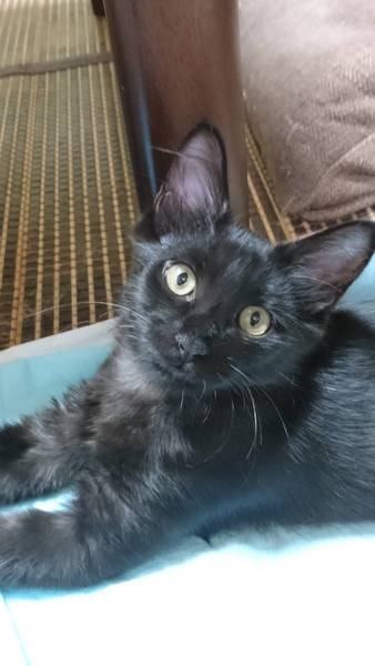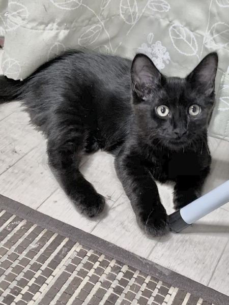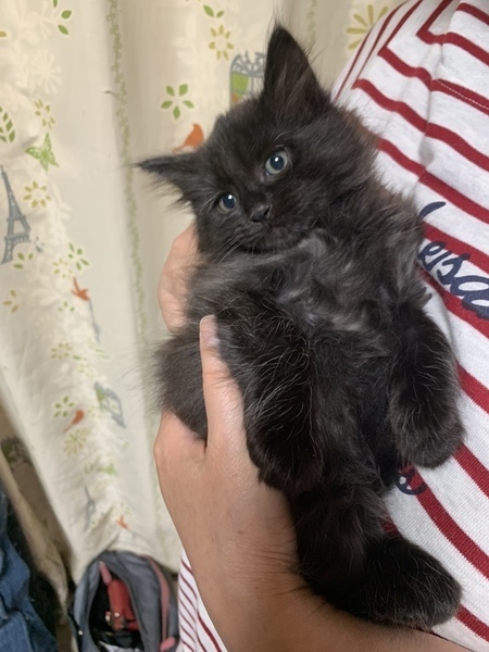 | 特徴(性格など) | ☆黒子猫(長毛)です。 4枚目の写真は保護して1週間、季節が変わって毛が夏毛に変身! 冬が楽しみな長毛クロ子猫です! 少し臆病ですが、元気いっぱいです。猫好きなので先住猫さんのいるお宅でお願いします。 |