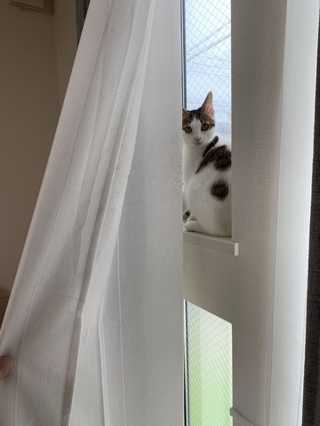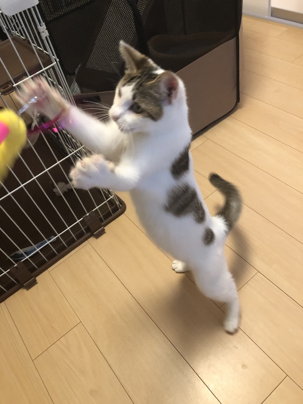 | 特徴(性格など) | キジシロのブチの女の子。ちょっと珍しい柄かもしれません。分け目がポイントの和風美少女です。 2回目の血液検査で猫白血病の持続感染(キャリア)が確定。遊ぶの大好き。甘えるのも大好き。 |