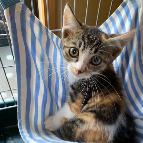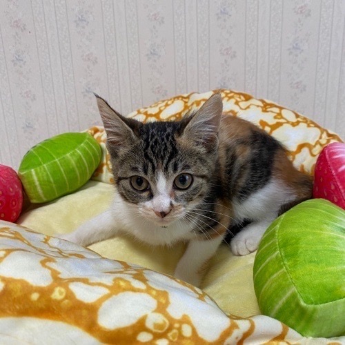 | 特徴(性格など) | 兄妹はおらず一人っ子なのですが賢い三毛女なので、空くん達のシャー!を覚えて、ちっちゃい声でシャーと言っていました。現在はどんどん甘えん坊になっています。 | ||