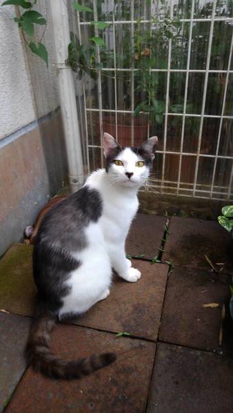 | 特徴(性格など) | 黒白はちわれです。野良猫ですがノミ、ダニ駆除しています。 | ||