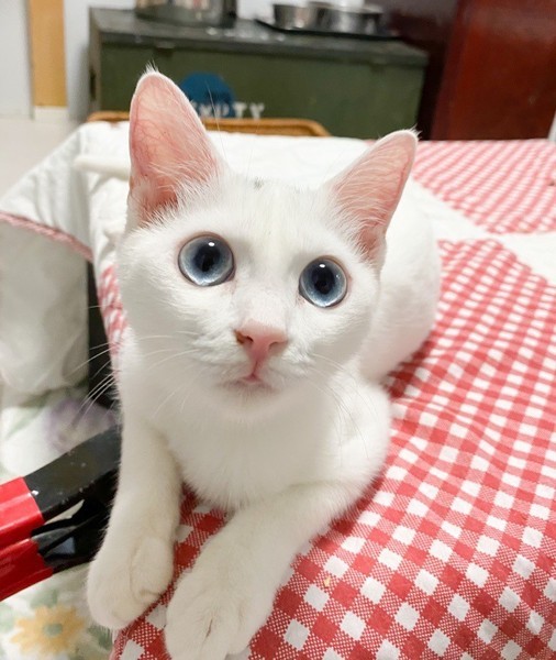 | 特徴(性格など) | 食欲旺盛で甘えっコ「ソシレ」ちゃん❤ 穏やかで物静かなお嬢さま♪ いつも人の傍にちょこちょこいる、ちょっぴりツンデレ・ストーカーです♪ 現在、ドライフードを置き餌として、パウチを一日2回与えています。 <推定誕生日:4月下旬> |