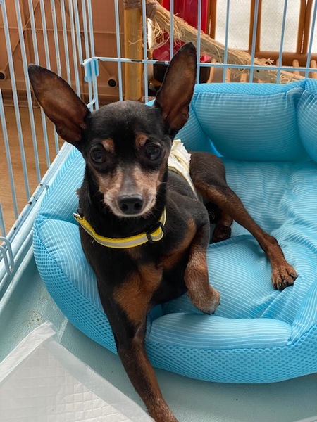 | 特徴(性格など) | 名前:ピースケ ミニチュアピンシャー 毛色:ブラックタン 性格:ビビりからくる噛みつきがあったのですが、歯がほとんどないため噛まれても痛くありません。現在は家庭での暮らしにも慣れてきて落ち着いてきました。マーキング王子なので、おむつをしています。(^^;) 健康状態は良好です。 去勢手術済 6種混合ワクチン済 狂犬病ワクチン済 フィラリア陰性 血液検査異常なし 歯石スケーリングと抜歯 耳ダニ(-) 食欲旺盛でとっても元気いっぱいです。 |