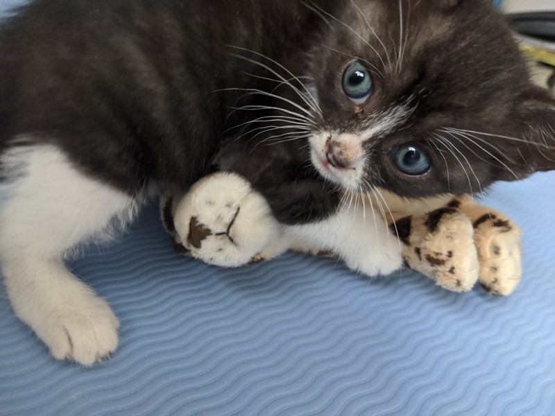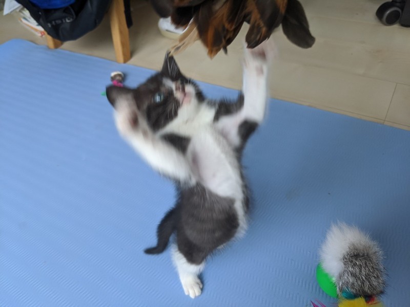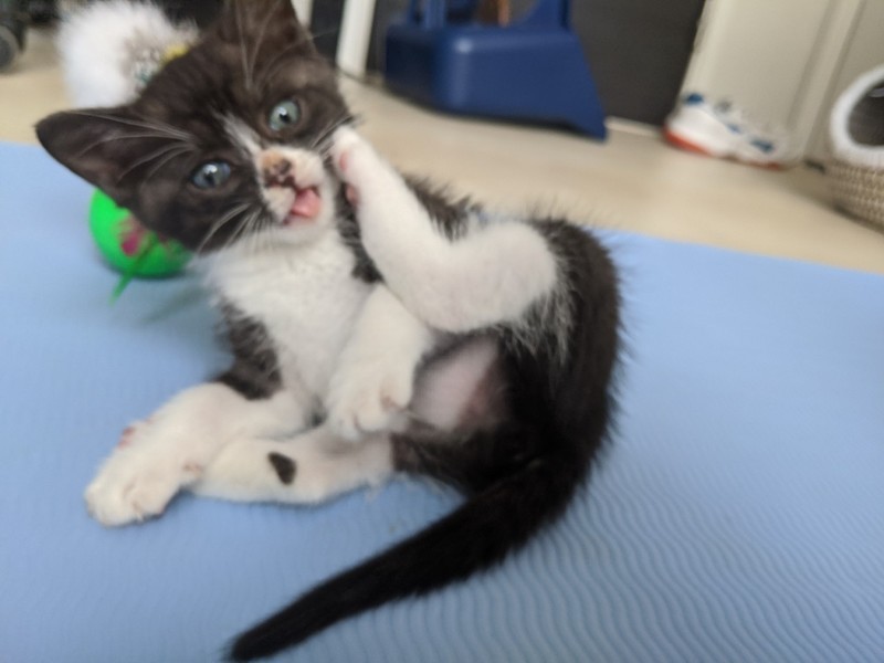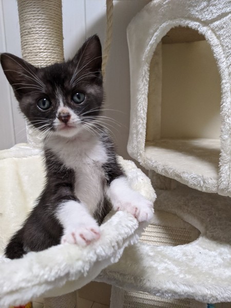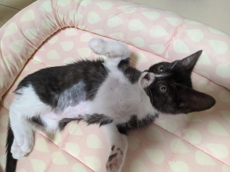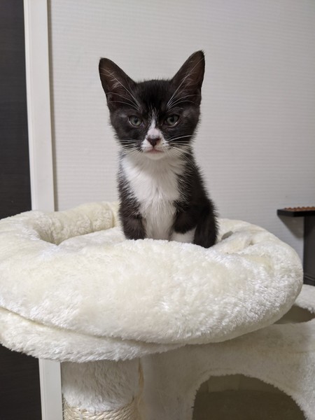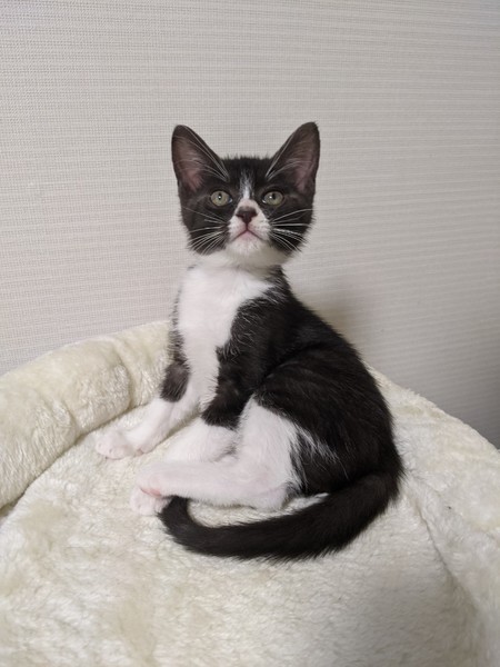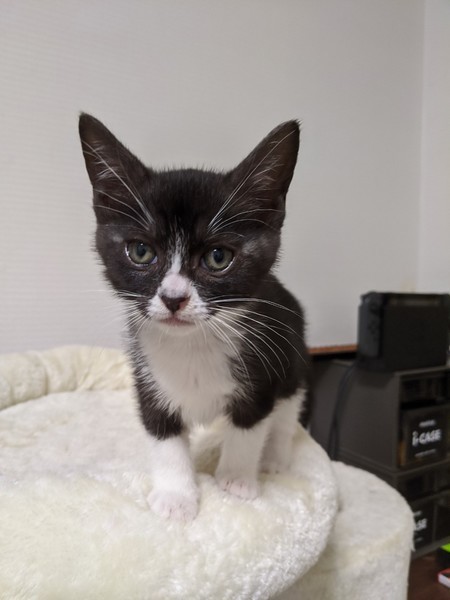| 特徴(性格など) | 2020.5.11生まれ(推定) 毛色:黒・白 好奇心旺盛で甘えん坊なハチワレちゃんです。 預かり宅では子供にもよくなつき、物怖じしない性格で、他の月齢の近い猫達とも仲良く遊んでいます。 気づくとそばにくっついて寝ているとても可愛らしい猫ちゃんです。 意思の強そうなおめめをしていたので、男の子と思われ付けられた【サスケ】の仮名。 本当のおうちに行ったらかわいいお名前をつけてあげて欲しいです♪ |