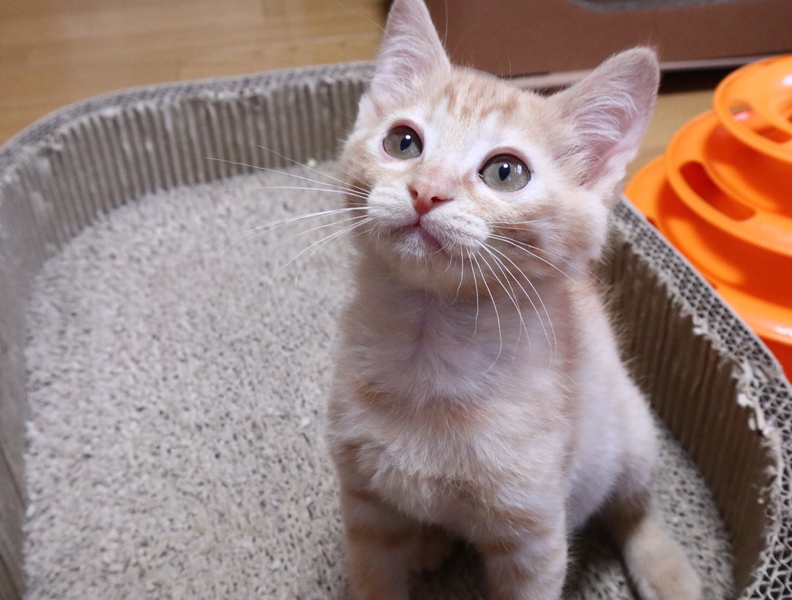 | 里親募集する理由 | 4月28日に茨城県動物指導センターから引き出しました。ミルクから育てましたが、お外で暮らしてた時に食べれなかったのか発育不良気味でした。 現在は健康です。優しい家族の一員となって幸せに暮らして欲しいです。 |
